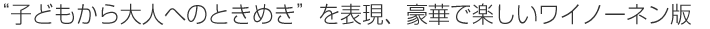 この版では、マーシャ(クララ)の現実と夢の世界を明確に分け、夢の世界となる二幕からは幻想性を強めた演出となっています。ドロッセルマイヤーの魔法でどんどん大きくなるクリスマス・ツリーや白い冬の森に雪の精が舞う印象的な場面、そして花のワルツなど、楽しい舞台創りがされています。