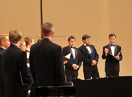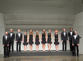 その合唱の教育機関の頂点に立つこのアカデミーもいわゆる合唱団のみならず、近年ヨーロッパで注目されている少人数のア・カペラグループを2003年に設立。2014年に初来日を果たした。予想通り、実力に裏打ちされた、ア・カペラを歌うにふさわしいグループ。一人一人がソリストでもあり、アンサンブルを担う素晴らしい調和。加えて合唱団とはちがい、洗練されたユーモアや演技、新しい楽しさが加わり、大好評を得た。2015年の公演を経て、今回2017年3度目の来日に期待が寄せられている。